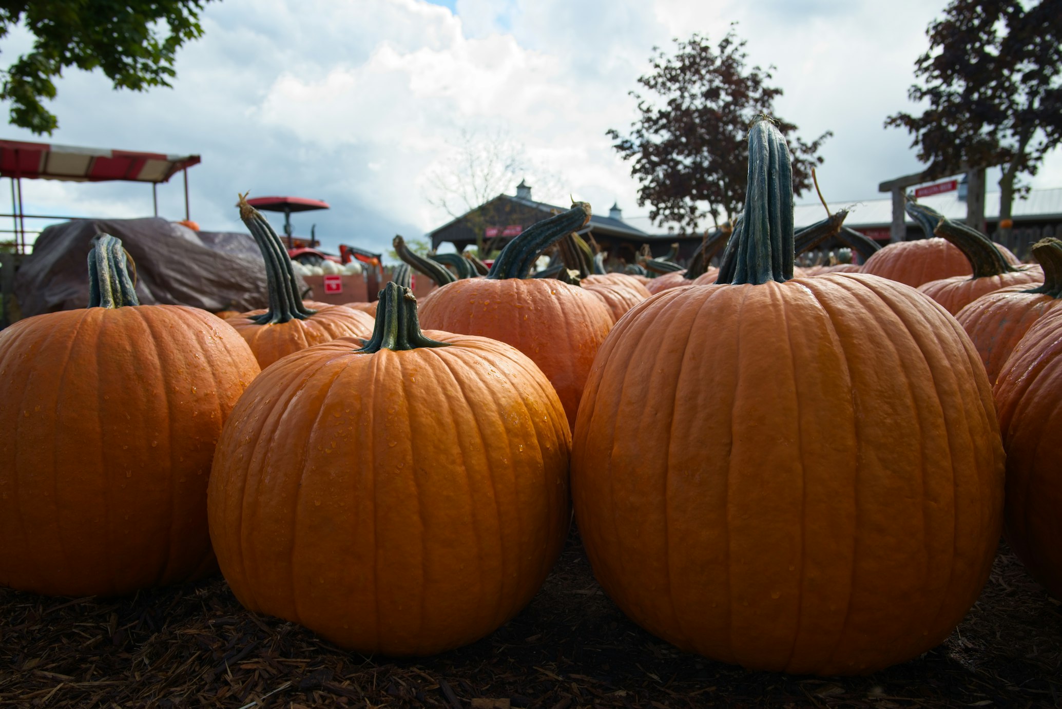 Pumpkin season usually begins in late September and runs through October, with a wide variety available — from small sugar pumpkins for pies to large, bright orange ones for carving.